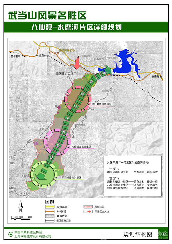 1.在规划范围上是根据武当山以天柱峰为首、向西北方向延伸出多条河谷的地形特点,为使本规划片区在地形地貌上保持完整,本规划范围将以包含整个水磨河河谷两侧山体为边界;