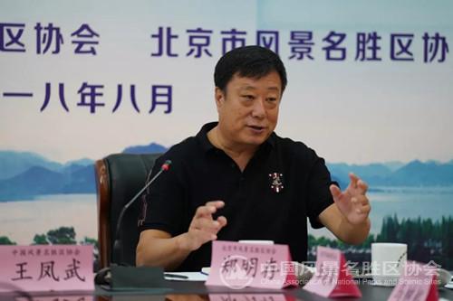 会议由中国风景名胜区副会长郭鹏伟主持,beat365手机版官网会长王凤武、北京市风景名胜区协会会长郑明存分别发言。谈到在党中央体制改革的新政策,新环境下,风景名胜区行业未来发展的方向和面临的机遇、挑战。并强调双方之间应加强合作交流,共同努力,以北京片区为试点,凝聚国家协会与地方协会的力量,更好的推进行业的进步,反映景区诉求、为景区服务。