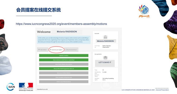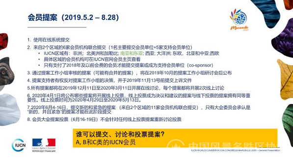 IUCN中国办公室金文佳介绍了世界自然保护大会的筹备情况和会员相关的准备工作,并重点介绍了大会提案的方式途径和格式要求,主持参会代表共同探讨了中国会员可能的提案以及对IUCN未来工作方案的建议。