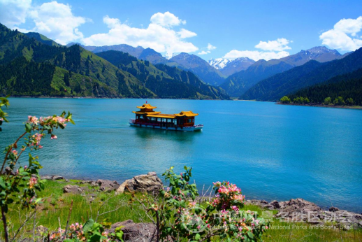 “小满者,物致于此小得盈满。”5月21日是农历二十四节气中的“小满”。时至小满,暑气渐盛,夏意日深,景色浓郁。小满时节,新疆天池湖畔四周被青山环抱、绿草如茵,野花似锦,碧水清澈,苍翠的云杉,瑶池湖畔处处绿意盎然,俨然一幅大自然的美丽山水画卷。