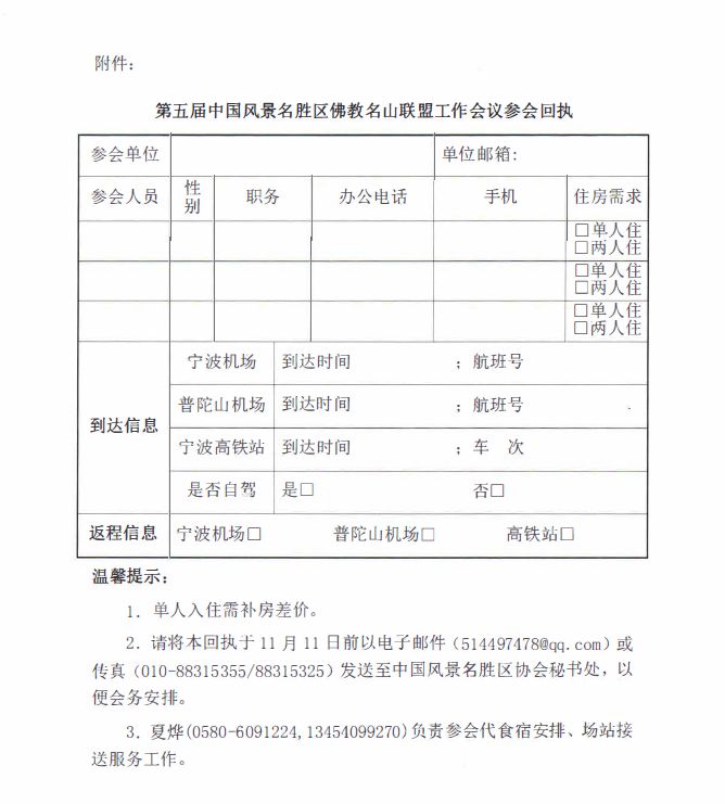 附件:第五届中国风景名胜区佛教名山联盟工作会议参会回执