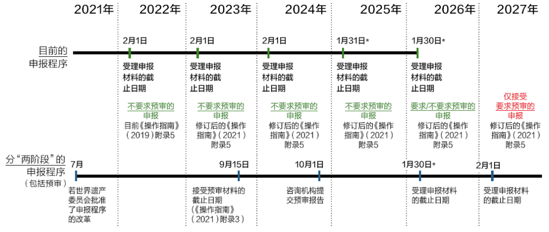 2021年版《操作指南》围绕世界遗产申报程序改革的系列讨论与共识性意见展开修订,为近10年来内容修订最大的一次,其中实质性修改内容可分为两点:
