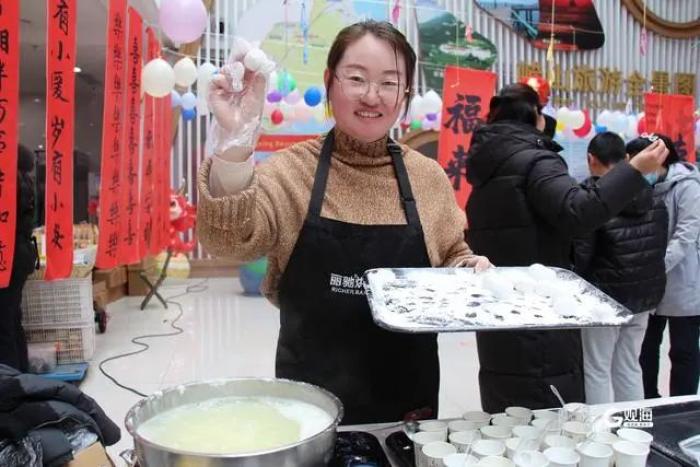 崂山游客服务中心内,青岛老字号“笑蕾”品牌元宵制作人员正熟练地演示着元宵制作过程,吸引了众多游客驻足观看、动手参与体验制作,现场制作好的元宵煮熟后,免费送给游客品尝,让游客真切感受到元宵的文化习俗和景区的温暖、关爱。