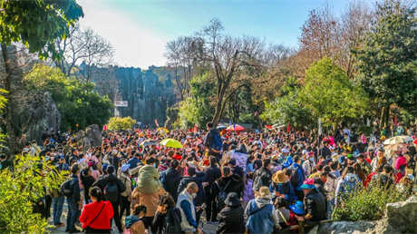 石林县紧紧围绕打造国际知名旅游目的地这一目标,念好“山”字经,做好“石”文章,谱好“文”化曲,助推石林旅游全域联动、全域出彩,让更多远方的客人留下来。今年“五一”小长假,石林景区推出民族文化巡游嘉年华、桨板表演赛、非遗文化歌舞展演、锦鲤随行迎好运等丰富多彩的节庆活动,将石林美景、民族文化、户外潮玩等元素立体组合,变舞台演出为场景融入表演。云南经典本土庭院话剧《问心》以沉浸式话剧的艺术形式将历史传奇搬到城古楼万寿宫,让庭院之美与戏剧之美相融,老宅迎来“新生”。杏林大观园推出“暖暖五一出游季,到石林杏林大观园清凉解暑”活动,800余间客房全部爆满。长湖民族文化体育活动场举行“五一节牛王争霸赛”,感受力与美的热血碰撞,汇聚像斗牛一样不服输的气魄。据统计,石林县在“五一”期间共接待游客99.69万人次,同比增70.76%;旅游总收入6.79亿元,同比增42.84%。
