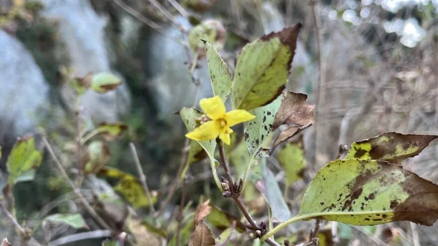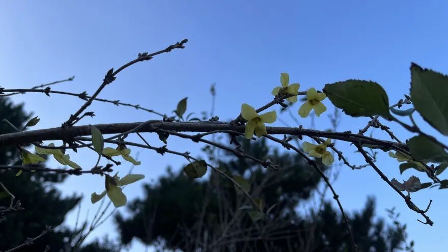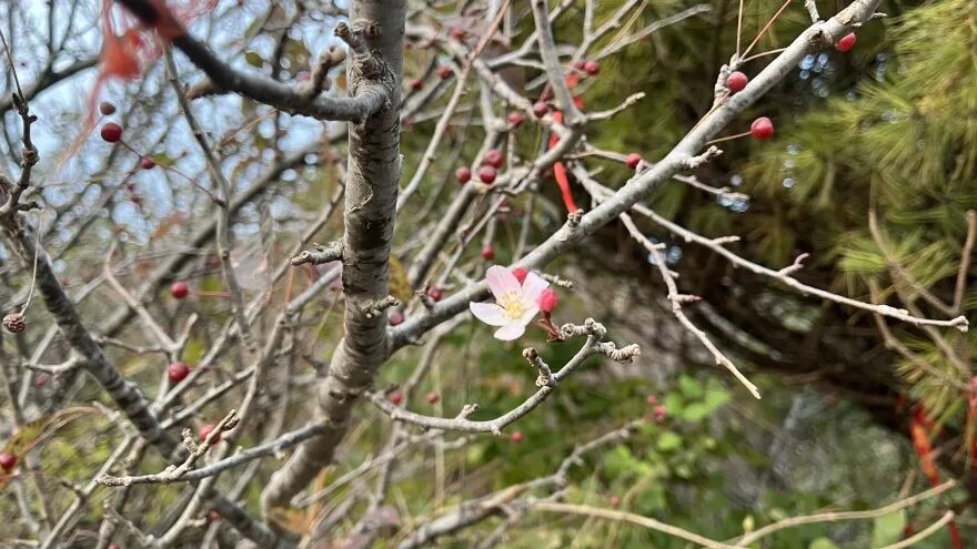 你可曾在深秋见过户外怒放的山花?寒露时节已过,在这个金桂飘香的季节,泰山上本该春季开花的海棠、连翘、花楸等花儿却意外开花了。