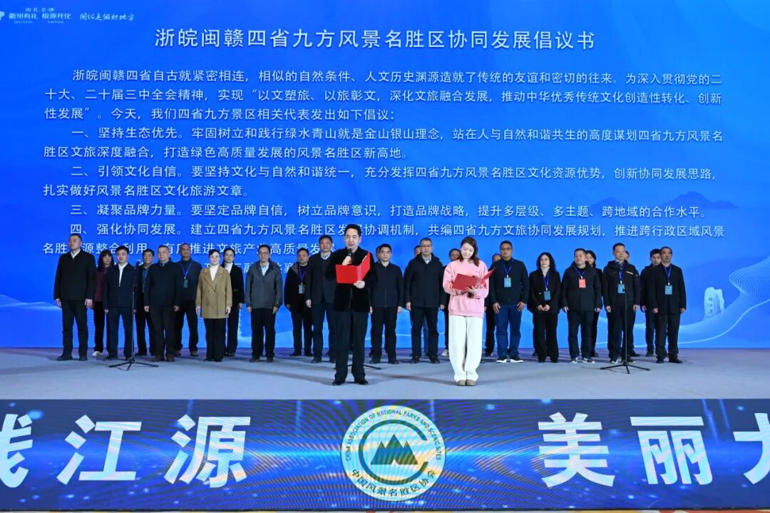 会议发布了《四省九方景区协同发展倡议书》。中国文艺志愿者协会副主席、著名表演艺术家、周恩来总理的扮演者、beat365手机版官网形象大使刘劲被聘为全景式大型系列主题宣传活动《美丽中国万里行》活动艺术总监;中国女子羽毛球队队员、2024年巴黎奥运会羽毛球混双冠军黄雅琼等被聘为“beat365手机版官网推广大使”。