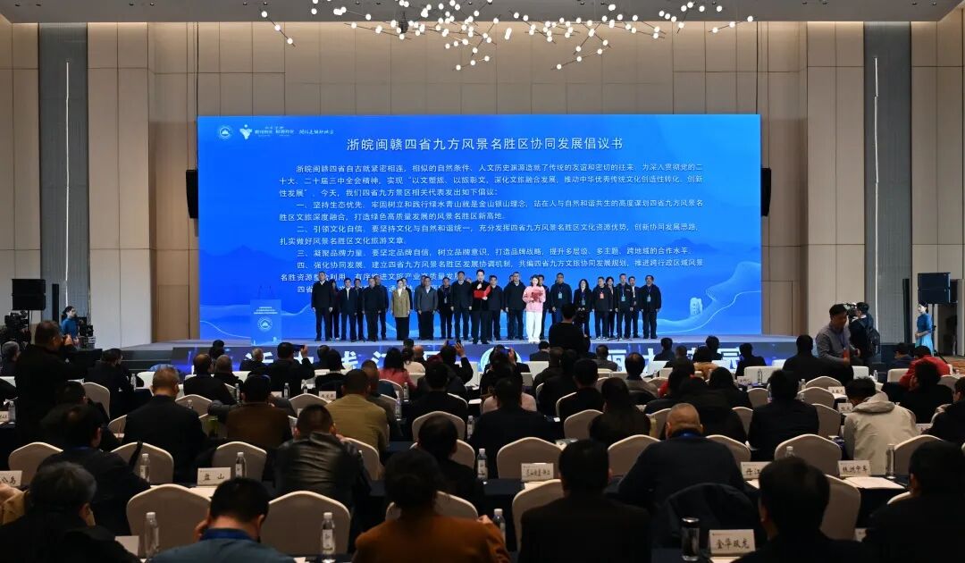 浙皖闽赣四省自古就紧密相连,相似的自然条件、人文历史渊源造就了传统的友谊和密切的往来。为深入贯彻党的二十大、二十届三中全会精神,实现“以文塑旅、以旅彰文,深化文旅融合发展,推动中华优秀传统文化创造性转化、创新性发展”。为此,四省九方景区相关代表发出四点倡议:
