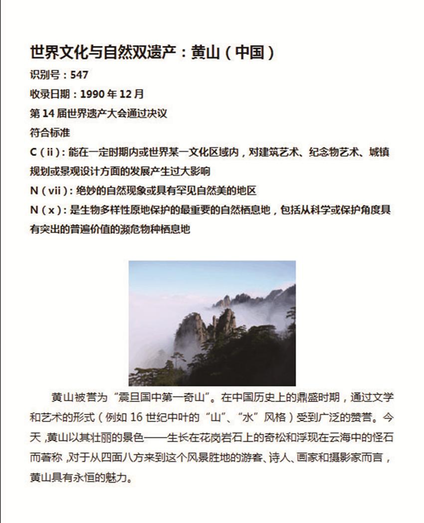 1.文字:以世界遗产为核心,从景区景点介绍、景区申遗历程、景区保护建设经验等方面编写。